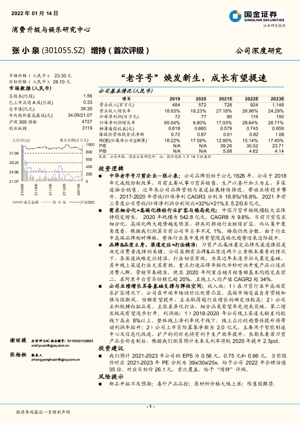 【国金证券】【20220114】张小泉-301055.SZ-“老字号”焕发新生,成长有望提速-26页