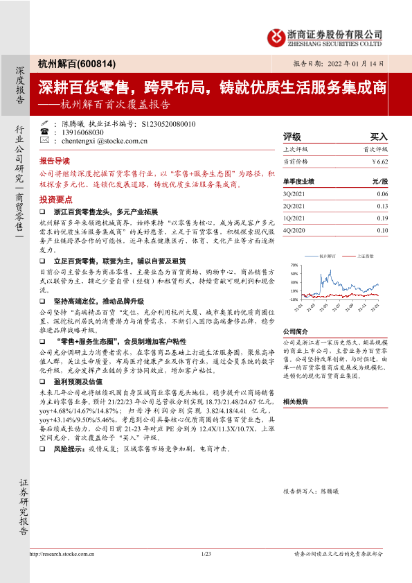 【浙商证券】【20220114】杭州解百首次覆盖报告:深耕百货零售,跨界布局,铸就优质生活服务集成商-23页