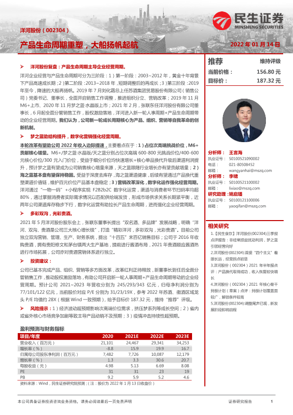 【民生证券】【20220114】洋河股份(002304)产品生命周期重塑,大船扬帆起航-37页