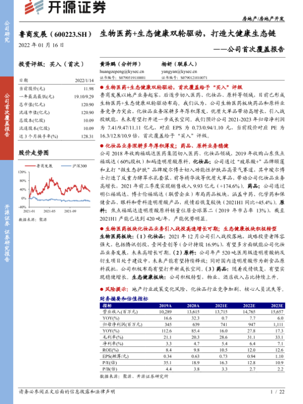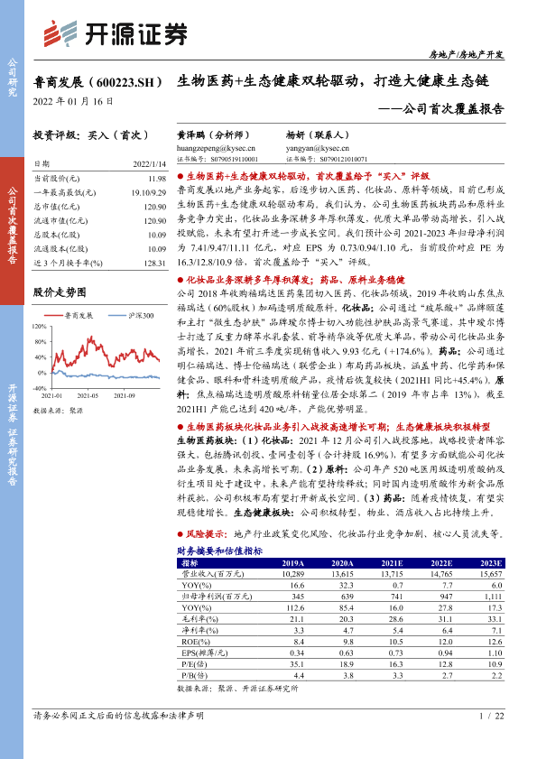 【开源证券】【20220116】20220116-开源证券-鲁商发展-600223.SH-公司首次覆盖报告:生物医药+生态健康双轮驱动,打造大健康生态链-22页