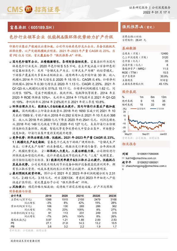 【海通证券】【20220117】富春染织-605189.SH-色纱行业领军企业 低能耗&强环保优势助力扩产升级-15页
