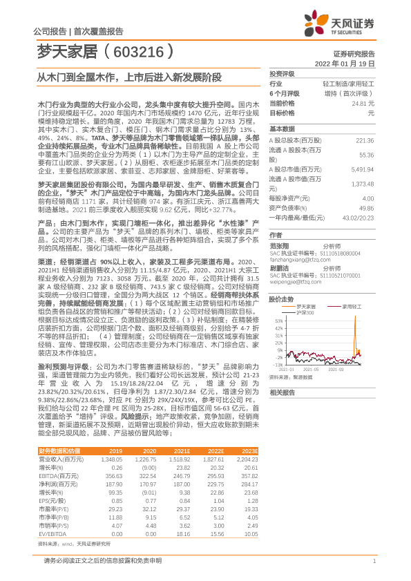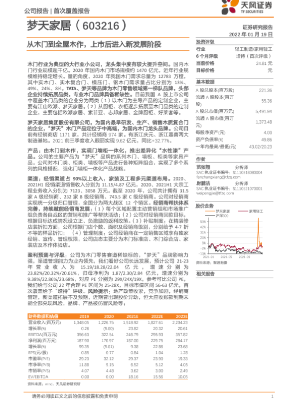 【天风证券】【20220119】从木门到全屋木作,上市后进入新发展阶段-22页