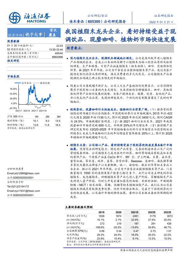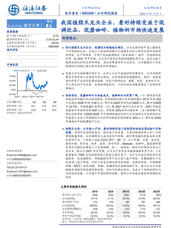 【海通证券】【20220120】我国植脂末龙头企业,看好持续受益于现调饮品、现磨咖啡、植物奶市场快速发展-20页