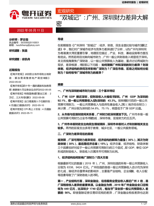 【粤开证券】【20220511】“双城记”,广州、深圳财力差异大解密-27页