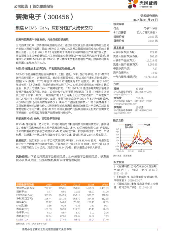 【天风证券】【20220121】20220121-天风证券-赛微电子-300456.SZ-聚焦MEMS+GaN,深耕外延扩大成长空间-22页