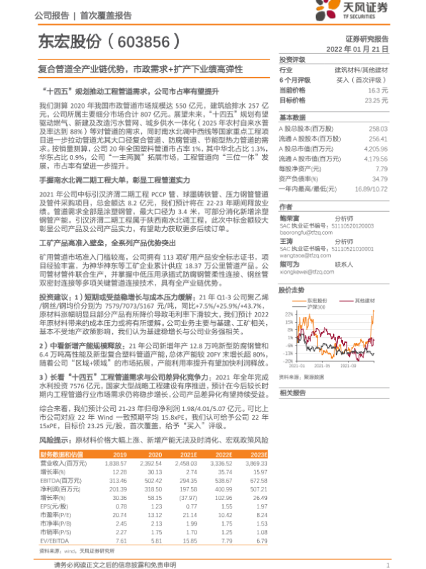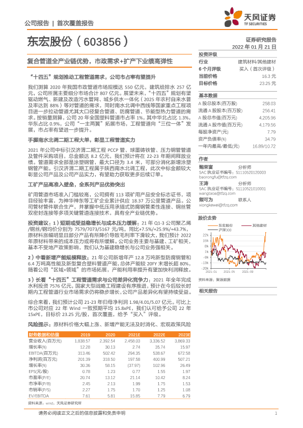 【天风证券】【20220121】东宏股份-603856.SH-复合管道全产业链优势,市政需求+扩产下业绩高弹性-22页