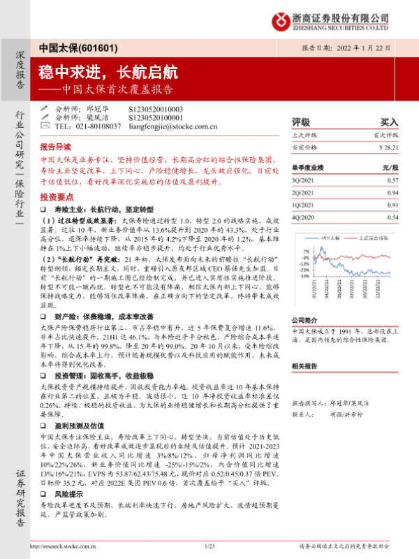 【浙商证券】【20220122】中国太保首次覆盖报告:稳中求进,长航启航-23页