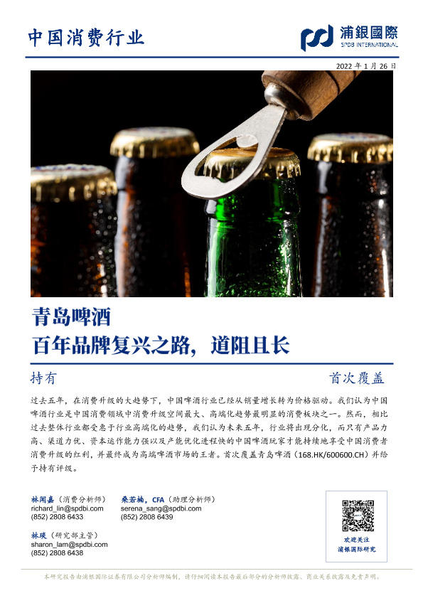 【浦银国际】【20220126】20220126-浦银国际证券-青岛啤酒-600600.SH-百年品牌复兴之路,道阻且长-39页