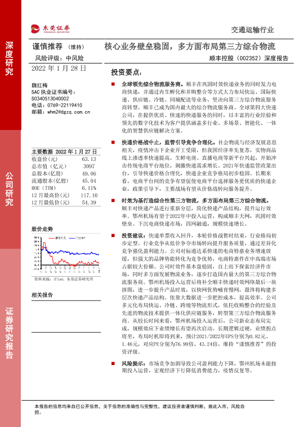 【东莞证券】【20220128】20220128-东莞证券-顺丰控股-002352.SZ-深度报告:核心业务壁垒稳固,多方面布局第三方综合物流-31页
