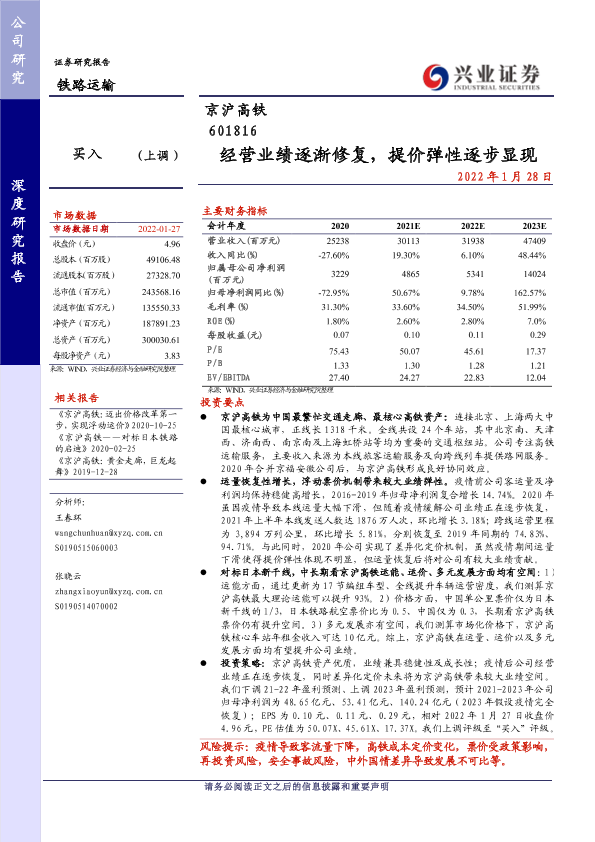 【兴业证券】【20220128】经营业绩逐渐修复,提价弹性逐步显现-25页