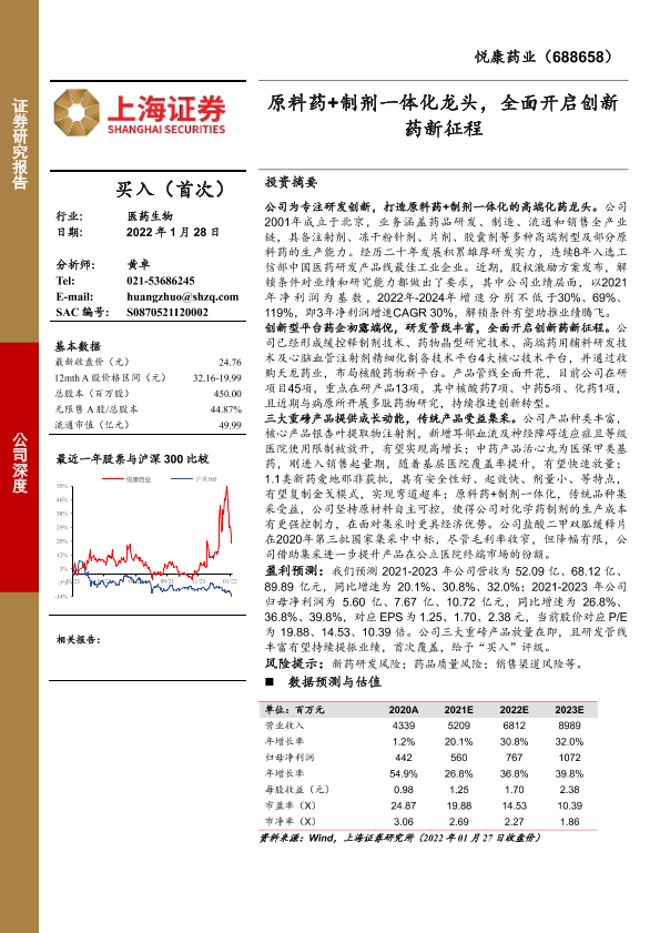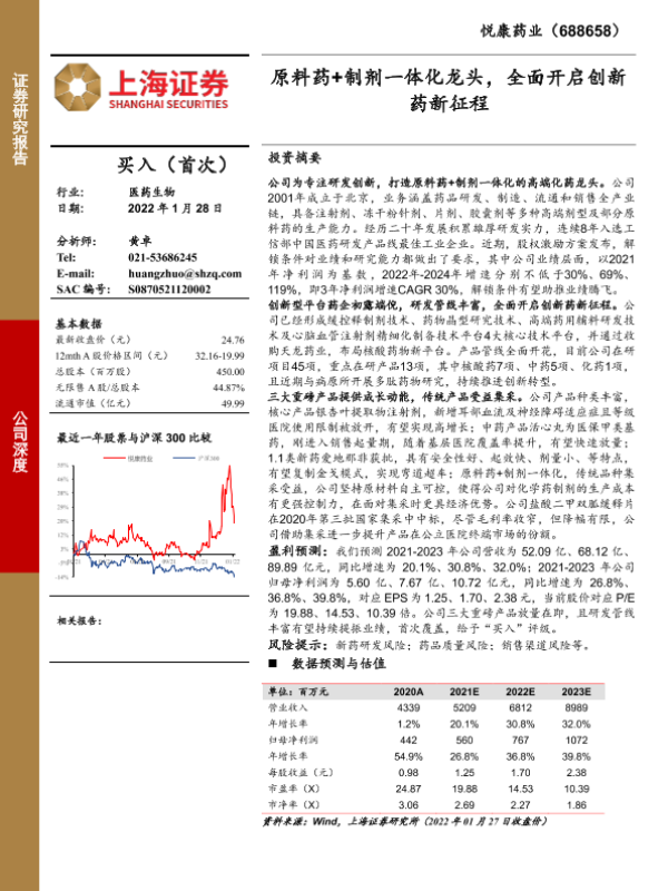 【上海证券】【20220128】悦康药业-原料药+制剂一体化龙头,全面开启创新药新征程-32页