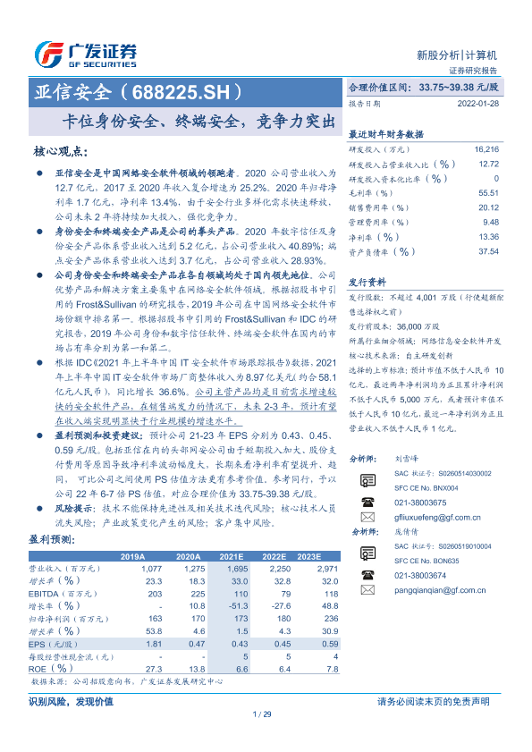 【广发证券】【20220128】亚信安全(688225.SH)卡位身份安全、终端安全,竞争力突出-29页