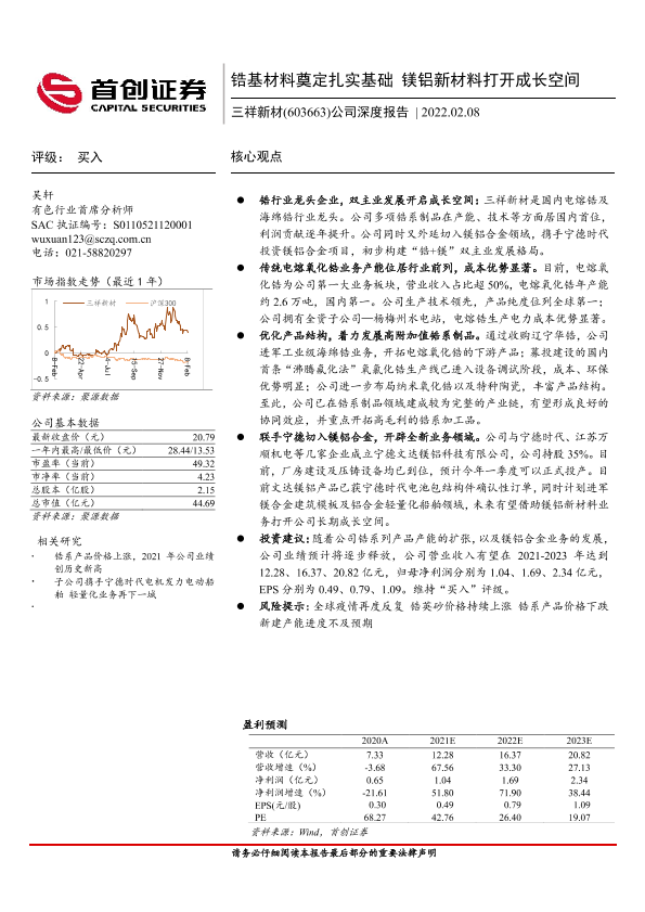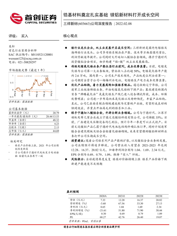 【首创证券】【20220208】三祥新材-603663.SH-公司深度报告:锆基材料奠定扎实基础 镁铝新材料打开成长空间-25页
