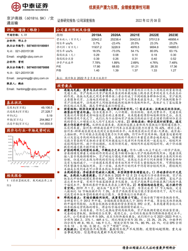 【中泰证券】【20220208】20220208-中泰证券-京沪高铁-601816.SH-优质资产潜力无限,业绩修复弹性可期-35页