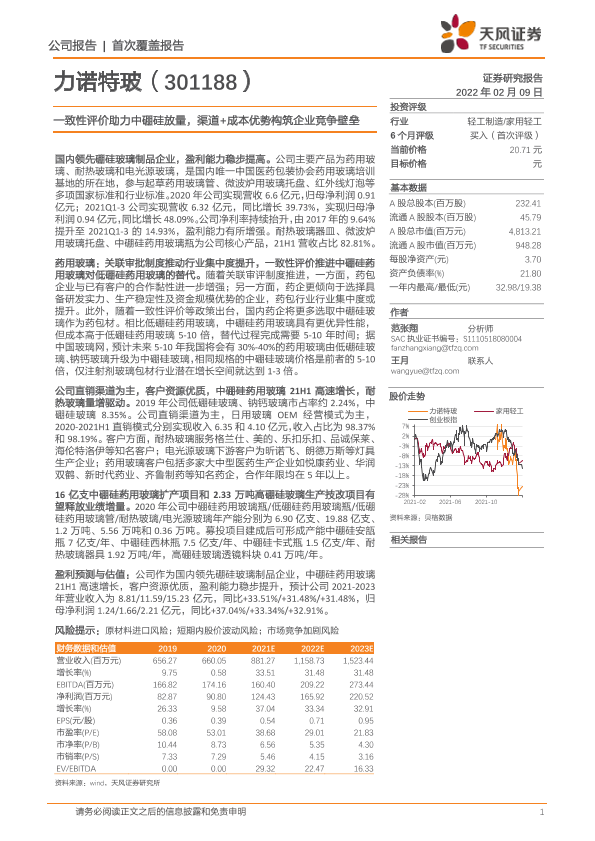 【天风证券】【20220209】20220209-天风证券-力诺特玻-301188.SZ-一致性评价助力中硼硅放量,渠道+成本优势构筑企业竞争壁垒-27页