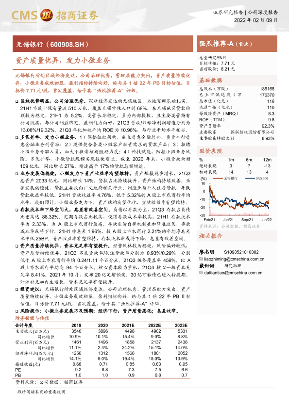 公司治理 区域经济 小微业务 无锡银行 资产质量