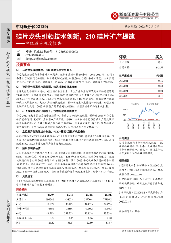 【浙商证券】【20220209】中环股份深度报告:硅片龙头引领技术创新,210硅片扩产提速-33页