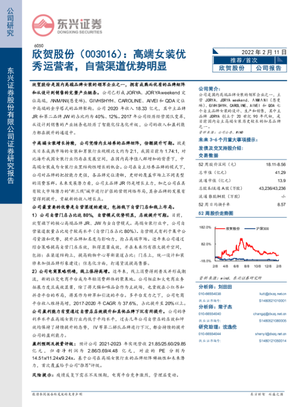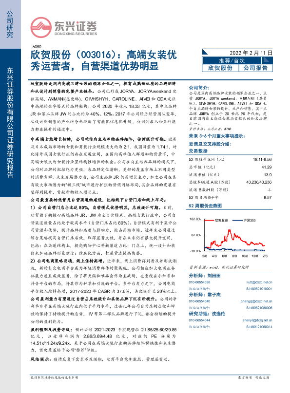 【东兴证券】【20220211】欣贺股份:高端女装优秀运营者,自营渠道优势明显-20页