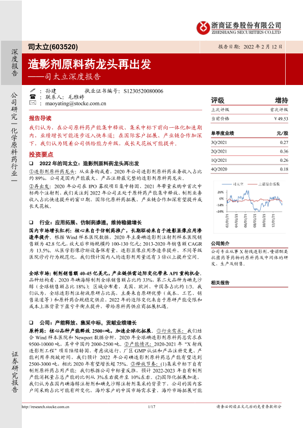 【浙商证券】【20220212】司太立深度报告:造影剂原料药龙头再出发-17页
