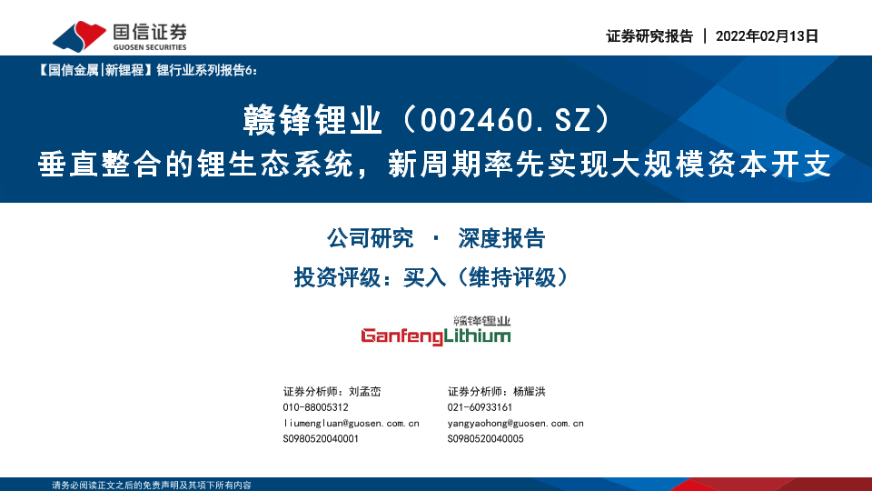 【国信证券】【20220213】垂直整合的锂生态系统,新周期率先实现大规模资本开支-58页