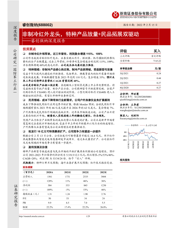 【浙商证券】【20220215】睿创微纳深度报告:非制冷红外龙头,特种产品放量+民品拓展双驱动-29页