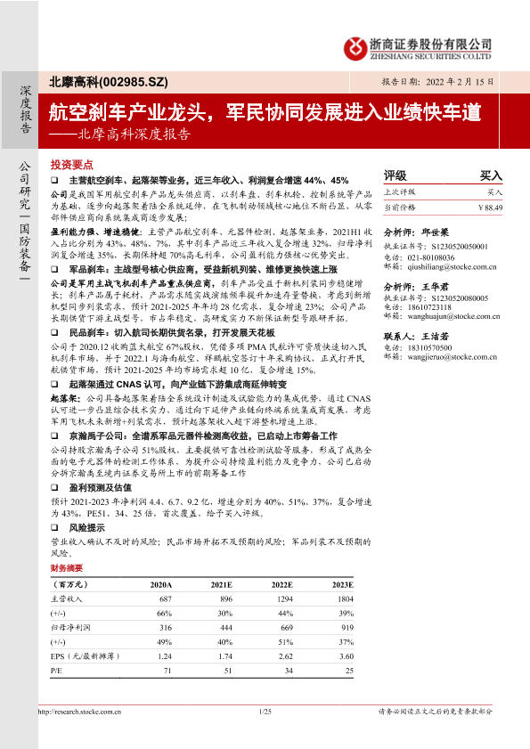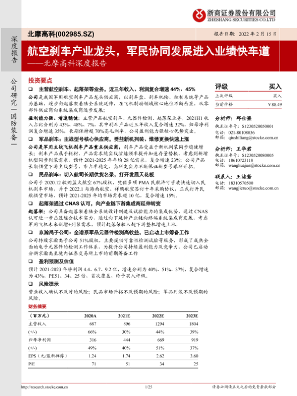 【浙商证券】【20220215】北摩高科深度报告:航空刹车产业龙头,军民协同发展进入业绩快车道-25页