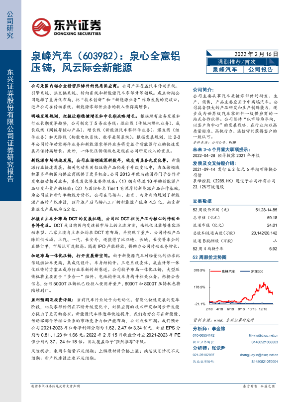 【东兴证券】【20220216】泉峰汽车:泉心全意铝压铸,风云际会新能源-25页