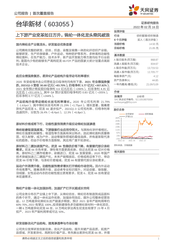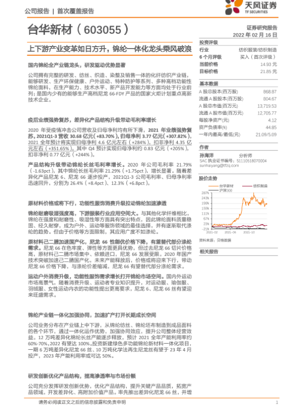 产业变革 台华新材 纺织制造 证券分析 锦纶行业