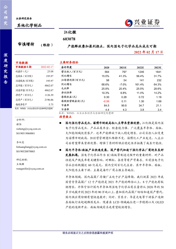 【兴业证券】【20220217】产能释放叠加盈利拐点,国内湿电子化学品龙头成长可期-26页