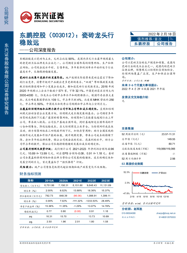 【东兴证券】【20220218】东鹏控股-003012.SZ-公司深度报告:瓷砖龙头行稳致远-21页