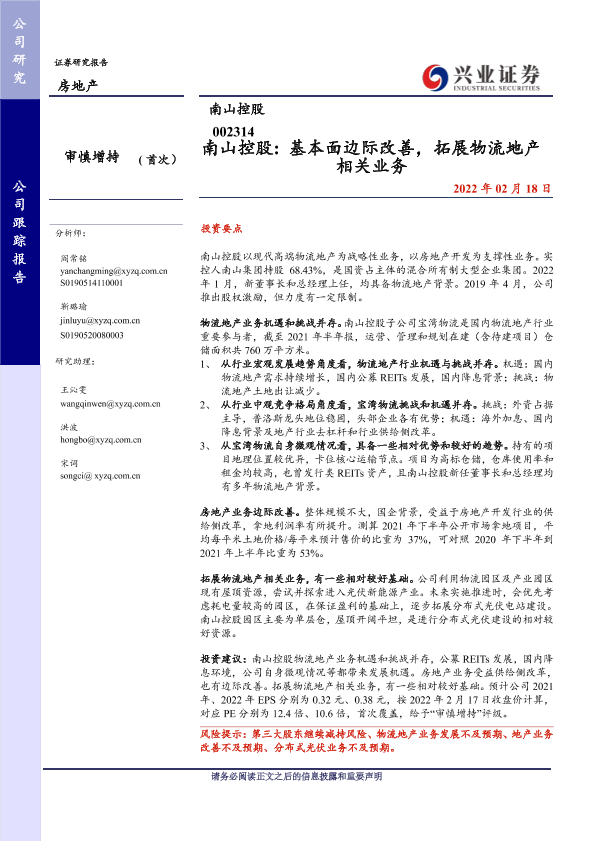 【兴业证券】【20220218】南山控股:基本面边际改善,拓展物流地产相关业务-27页