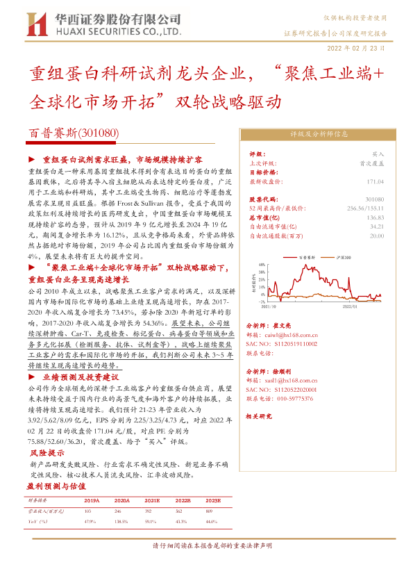 【华西证券】【20220223】20220223-华西证券-百普赛斯-301080.SZ-重组蛋白科研试剂龙头企业, “聚焦工业端+全球化市场开拓”双轮战略驱动-30页
