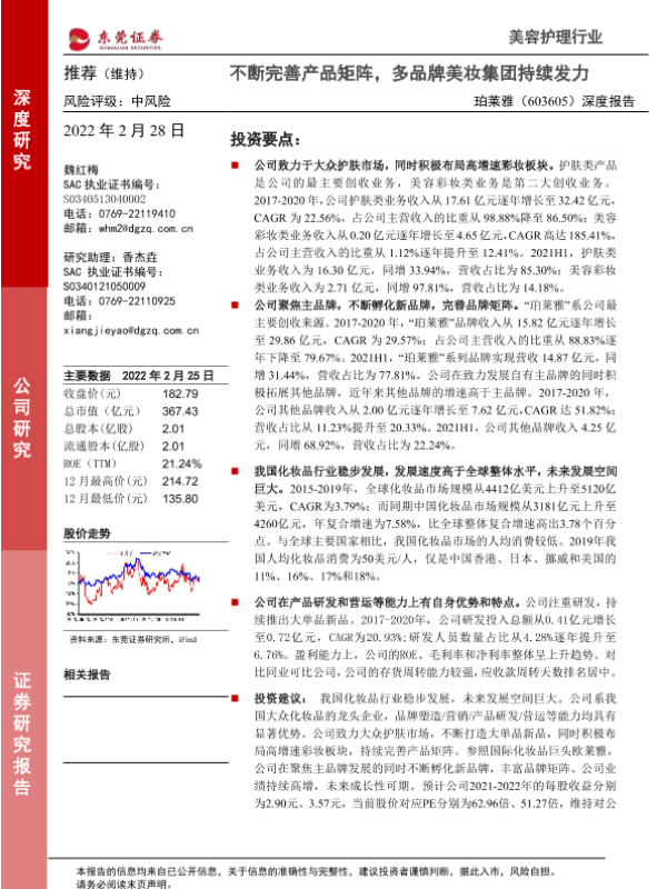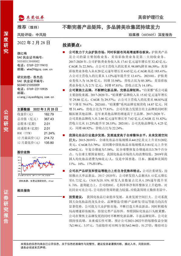 【东莞证券】【20220228】20220228-东莞证券-珀莱雅-603605.SH-深度报告:不断完善产品矩阵,多品牌美妆集团持续发力-32页