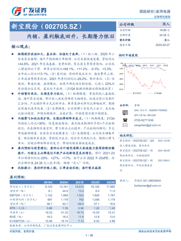 【广发证券】【20220227】新宝股份-002705.SZ-内销、盈利触底回升,长期潜力依旧-20页