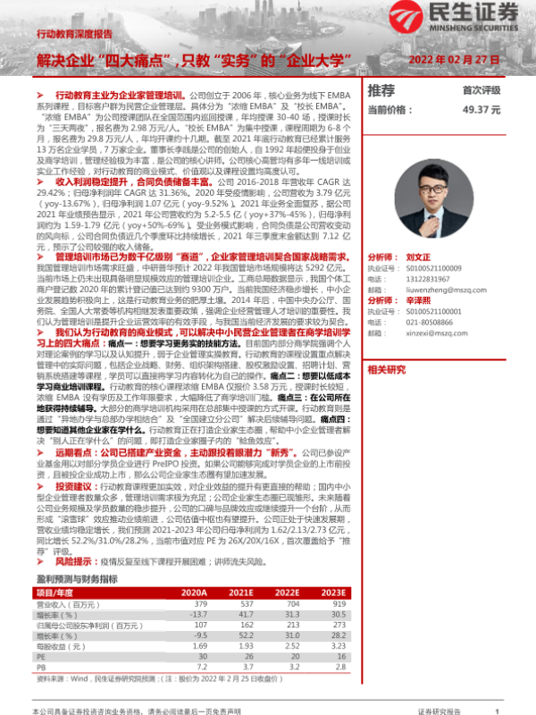 【民生证券】【20220227】行动教育深度报告:解决企业“四大痛点”,只教“实务”的“企业大学”-37页