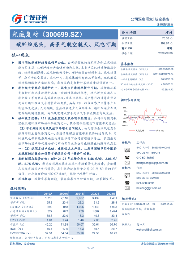 【广发证券】【20220228】光威复材(300699.SZ):碳纤维龙头,高景气航空航天、风电可期-37页