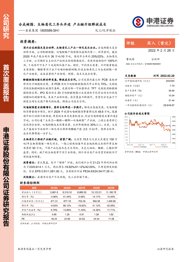 【申港证券】【20220228】20220228-申港证券-圣泉集团-605589.SH-合成树脂、生物质化工齐头并进 产业链升级释放成长-28页