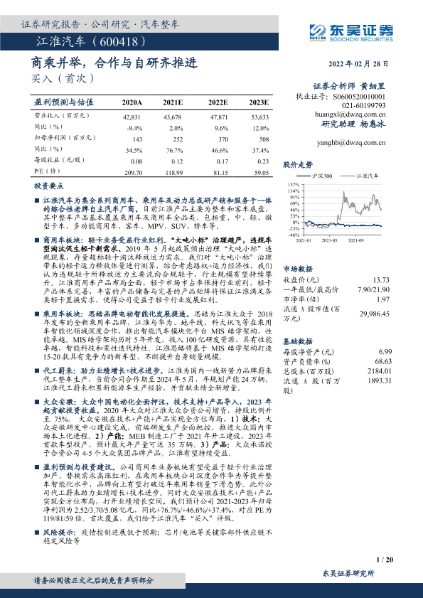 【东吴证券】【20220228】江淮汽车-600418.SH-商乘并举,合作与自研齐推进-20页