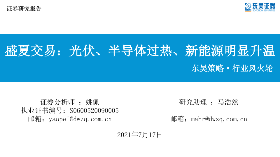 【东吴证券】【20210717】盛夏交易:光伏、半导体过热、新能源明显升温-20页