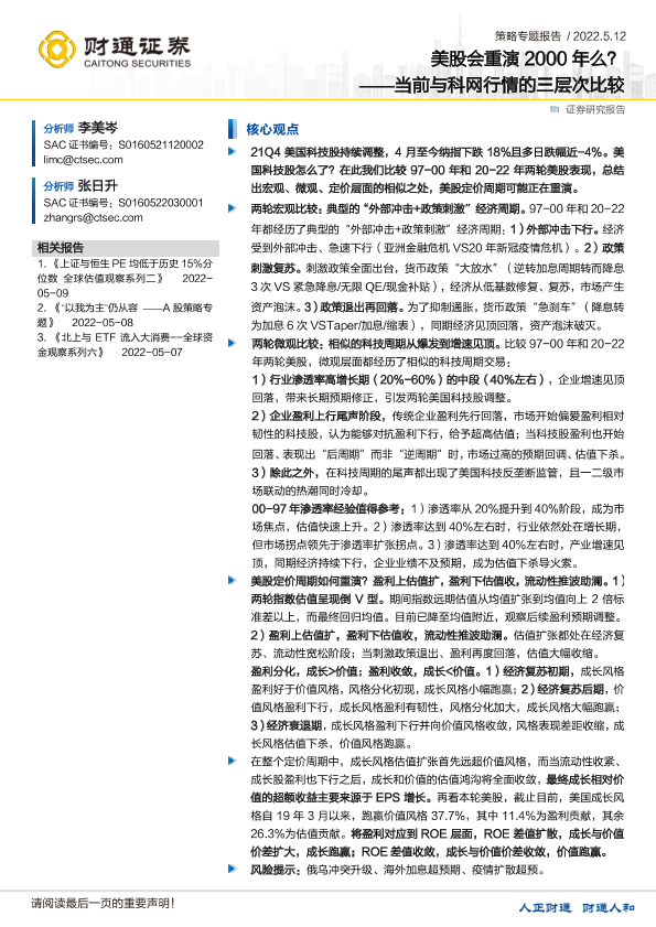 【财通证券】【20220512】当前与科网行情的三层次比较:美股会重演2000年么?-16页