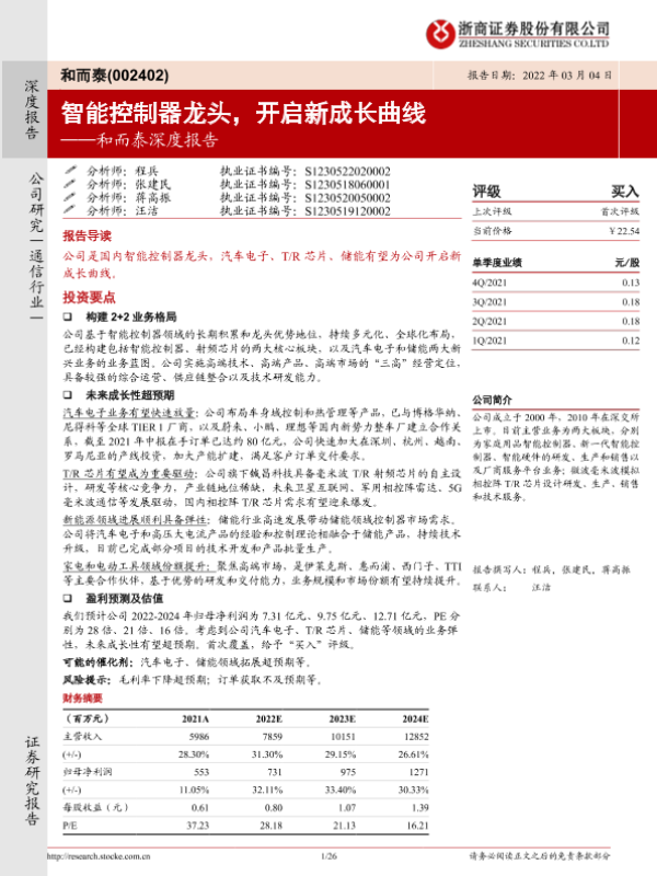 【浙商证券】【20220304】和而泰深度报告:智能控制器龙头,开启新成长曲线-26页