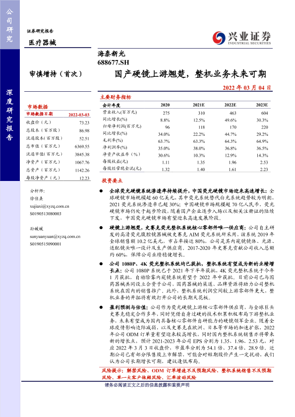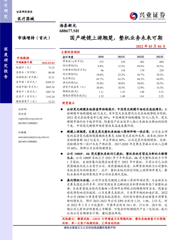 【兴业证券】【20220304】海泰新光:国产硬镜上游翘楚,整机业务未来可期-35页