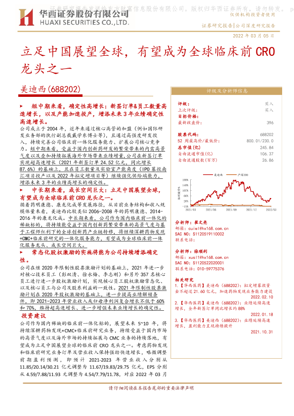【华西证券】【20220305】立足中国展望全球,有望成为全球临床前CRO龙头之一-20页