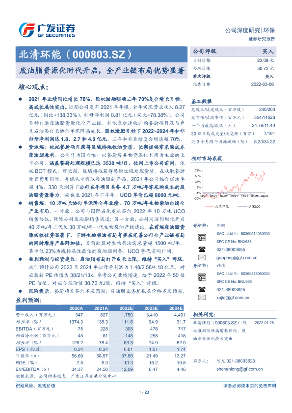 【广发证券】【20220306】20220306-广发证券-北清环能-000803.SZ-废油脂资源化时代开启,全产业链布局优势显著-23页