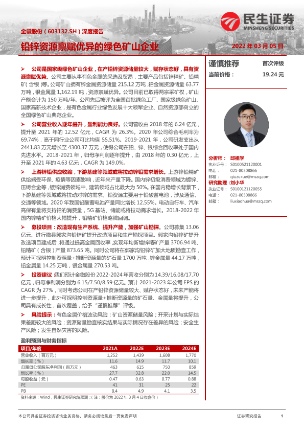 【民生证券】【20220305】20220305-民生证券-金徽股份-603132.SH-深度报告:铅锌资源禀赋优异的绿色矿山企业-34页