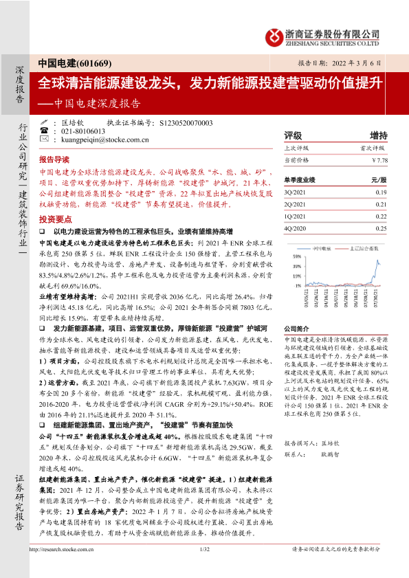 【浙商证券】【20220306】中国电建深度报告:全球清洁能源建设龙头,发力新能源投建营驱动价值提升-32页