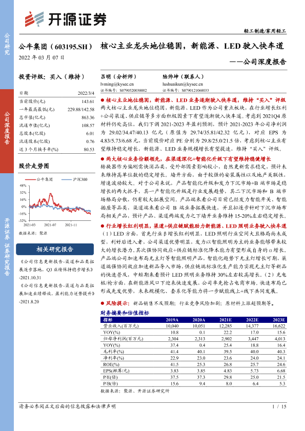 【开源证券】【20220307】公牛集团-公司深度报告:核心主业龙头地位稳固,新能源、LED驶入快车道-15页