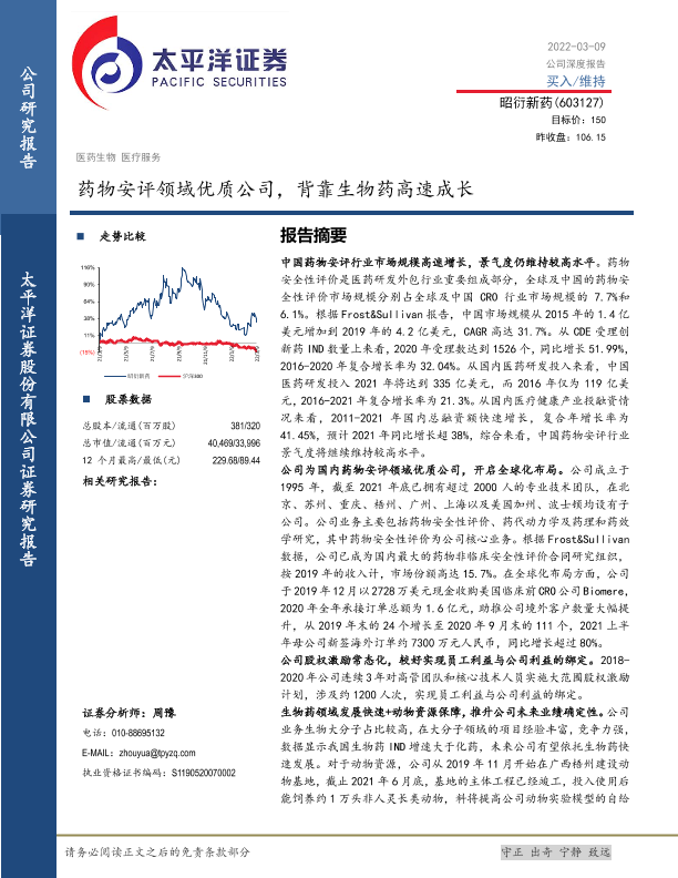 【太平洋证券】【20220309】药物安评领域优质公司,背靠生物药高速成长-46页