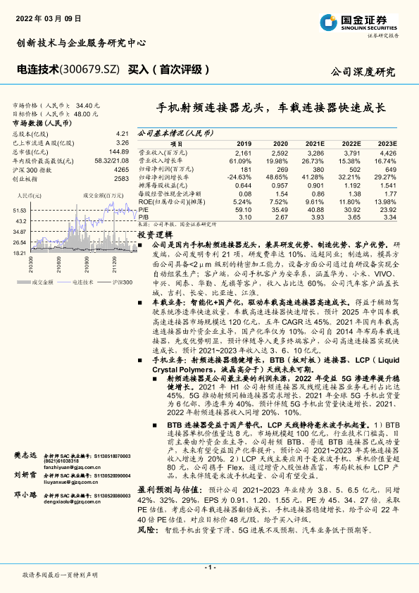 【国金证券】【20220309】电连技术-300679.SZ-手机射频连接器龙头,车载连接器快速成长-25页