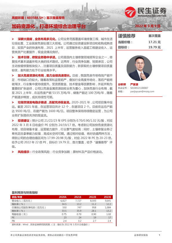 【民生证券】【20220309】高能环境(603588.SH)首次覆盖报告:加码资源化,打造环境综合治理平台-34页